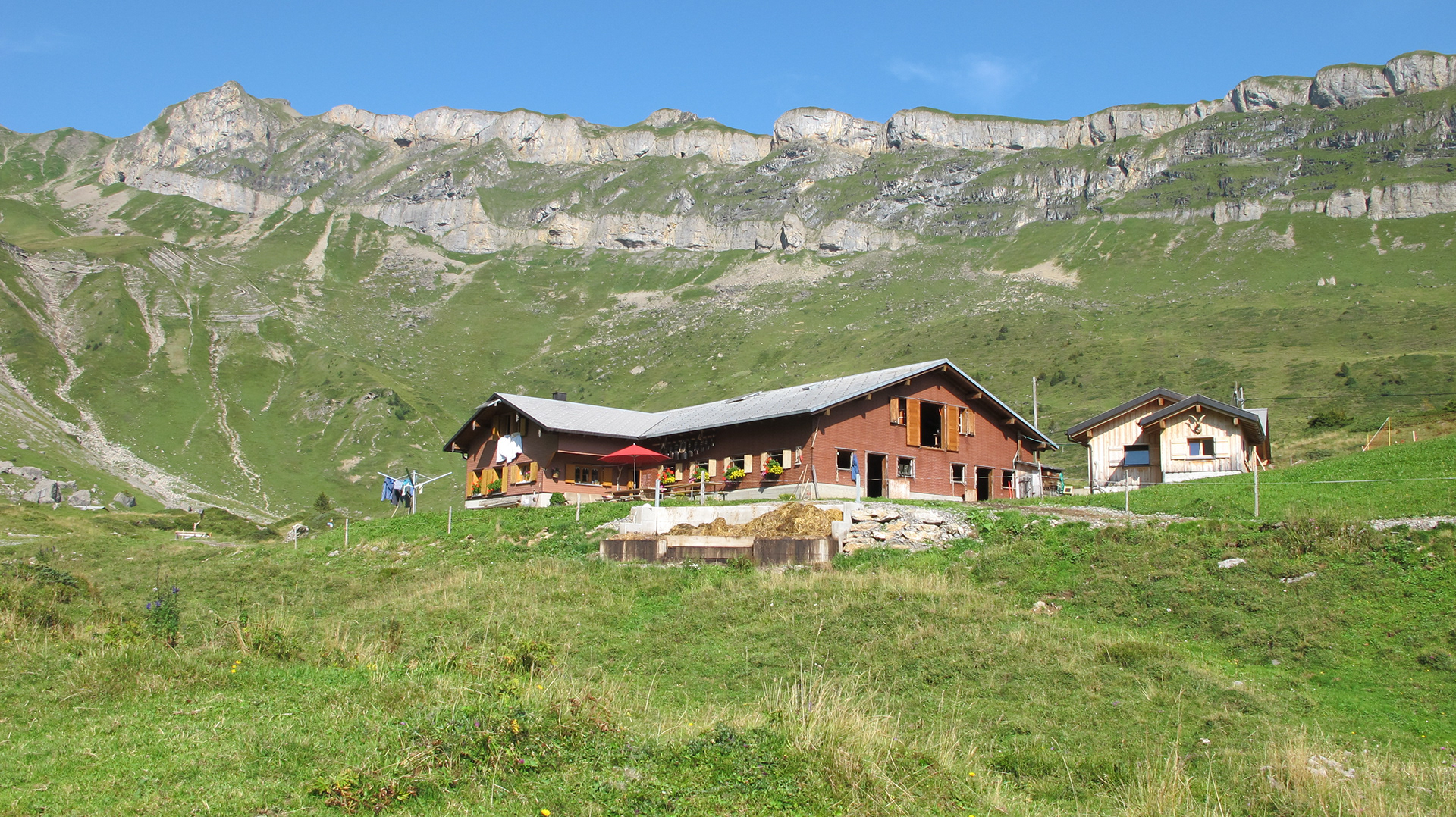 Die Alp liegt auf einer Terrasse oberhalb des Grosstals mit herrlicher Aussicht hinüber zum Uri Rotstock. Anfangs Juni ziehen rund 35 Kühe, 10 Ziegen und 16 Schweine hinauf zur Isenthaler Grossalp. Claudia & Sepp Arnold produzieren während der Alpzeit Ziegen und Kuhkäse.