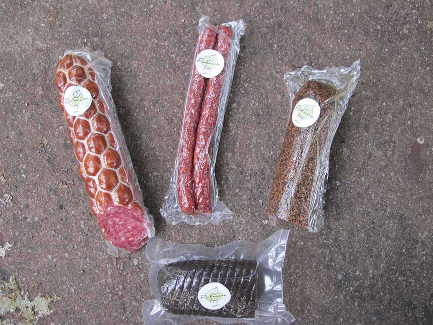 Diese Produkte (Waben-Salami, Pfeffer-Salami, Mini Salami und Mostbröckli) kommen vom Flühackerhof Anwil, Familie Gysin / Zweifel und sind hergestellt aus hofeigenem Rindfleisch.